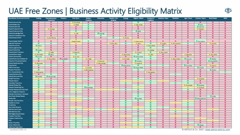 Between free zone vs mainland, legal forms, shareholder structure, visas, tax registration and bank account opening, setting up a company in the UAE can quickly become complex for an entrepreneur or a foreign company. This checklist brings together the essential points to review before you commit: business model and activities, choice of jurisdiction, license type, governance and shareholders’ agreements, substance and visas, tax and accounting, banking, and ongoing compliance.