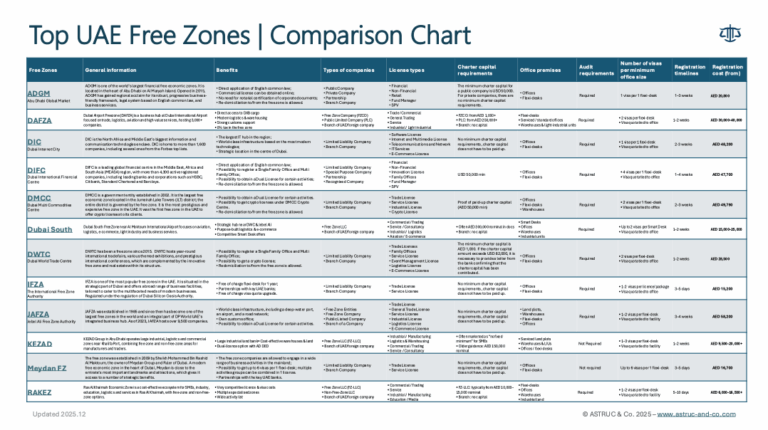 Free zones comparison chart