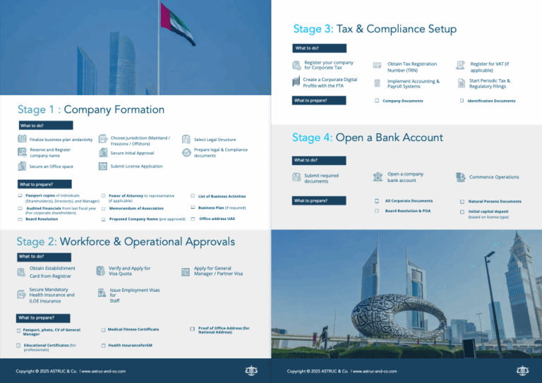 The toolkit brings together four practical documents you can use to plan and structure your UAE company setup.
